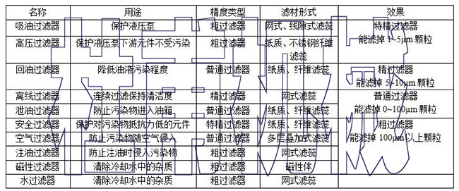 在選用過濾器時(shí),過濾精度是首先要考慮的一項(xiàng)重要性能指標(biāo)、它直接關(guān)系到液壓系統(tǒng)中油液的清潔度等級。過濾器按過濾精度可以分為粗過濾器,普通過濾器、精過濾器和特精過濾顆粒。