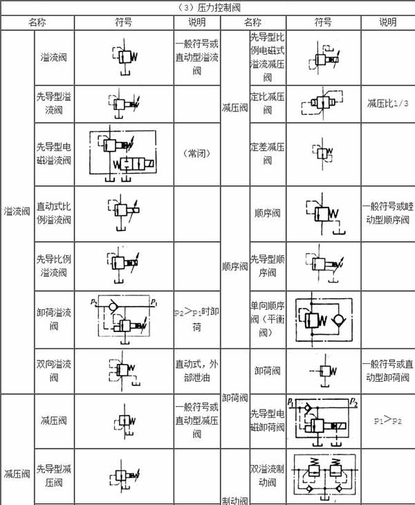 液壓磚機的圖形符號有三角形、直線和斜箭頭、圓弧箭頭等。固體三角形代表壓力傳遞的方向表示所使用的工作介質(zhì)是液體。泵、馬達、液壓閥和電液閥都有這種功能元件的立體三角形;箭頭表示液體流動的通道和方向,在液壓泵、液壓馬達、彈簧、比例電磁鐵等上方添加的箭頭表明它們可以調(diào)整;單圓弧箭頭和雙向箭頭表示液壓馬達的旋轉(zhuǎn)方向,雙向箭頭表示它們可以正向反轉(zhuǎn)。